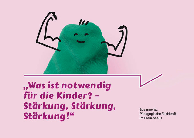 „Am wirksamsten können wir diese Kinder stärken, indem wir die Fachkräfte unterstützen, die sie begleiten. In zahlreichen Kontexten kommen Fachkräfte mit Kindern oder Jugendlichen in Berührung, die häusliche Gewalt (mit)erlebt haben: von der Kita über die Jugendhilfe bis hin zum Frauenhaus. Es ist wichtig, dass die betroffenen Kinder in all diesen Umfeldern auf kompetente und handlungssichere Bezugspersonen treffen, die sie bei der Verarbeitung ihrer Erlebnisse unterstützen können“,