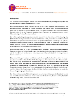 Obwohl die äußerst kurze Stellungnahmefrist zum Referentenentwurf des Bundesministeriums des Innern, für Bau und Heimat zum Entwurf eines Gesetzes zur Entfristung des Integrationsgesetzes der Bundesregierung bereits abgelaufen ist, weist FHK in ihrer Stellungnahme auf die schwierigen Folgen für gewaltbetroffene geflüchtete Frauen durch die Wohnsitzauflagen hin. Die genauen Ausführungen dazu in unserer Stellungnahme