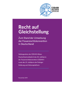 Die CEDAW-Allianz Deutschland: Sie ist ein Zusammenschluss von 32 zivilgesellschaftlichen Organisationen mit frauen-und menschenrechtspolitischem Schwerpunkt. Trägerorganisation der Allianz ist der Deutsche Frauenrat. Die Stellungnahme wurde im Rahmen des regelmäßigen Prüfverfahrens der Umsetzung von CEDAW erarbeitet. Sie beschreibt aus Sicht der beteiligten Organisationen die aktuellen Diskriminierungslagen für Mädchen* und Frauen* in Deutschland.